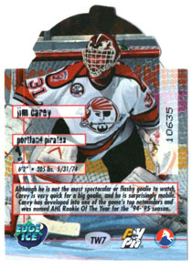 1995-96 Edge Ice THE WALL DIE-CUT Masks Jim Carey (G) Pirates #TW7