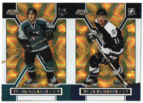 2002-03 Pacific EXCLUSIVE GOLD DOUBLE Un-CUT Teemu Selanne Sharks – Brad Richards Lightning #152 ja 157