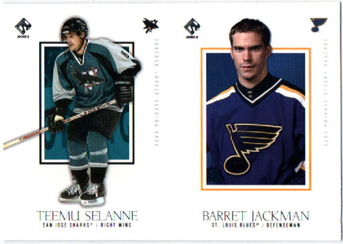 2002-03 Pacific Private Stock DOUBLE Un-CUT Teemu Selanne Sharks – Barret Jackman Blues #88 ja 83