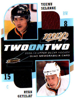 2009-10 UD MVP Two on Two JERSEYS Teemu Selanne-Ryan Getzlaf- Shane Doan-Mikkel Boedker #J-SDGP