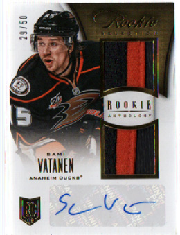 2013-14 Panini Rookie Anthology Rookie Prime 2-Color JERSEY AUTOGRAPHS 29/50 Sami Vatanen RC Ducks #101