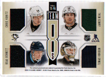 2013-14 Score Team 8s Jerseys Ilya Bryzgalov, Kimmo Timonen, Tomas Vokoun, Beau Bennett, Chris Kunitz, James Neal, Scott Laughton, Sean Couturier