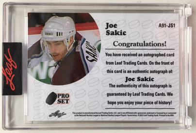 2020-21 Leaf Pro Set Memories Hockey Joe Sakic 1/1 AUTOGRAPH Avalanche # A91-JS1
