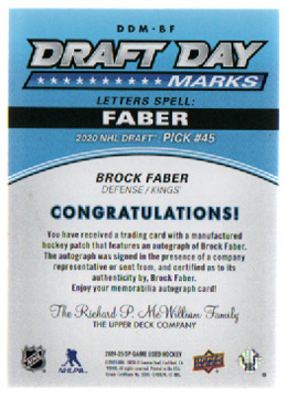 2024-25 SP Game Used DRAFT DAY MARKS AUTO 03/35 Brock Faber Wild #DDM-BF