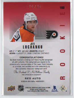 2024-25 SPx Hockey ROOKIE RED AUTOGRAPH 20/25 Jett Luchanko Flyers #153