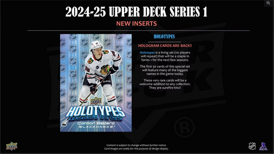 Holotypes: Hologram cards are back!! Holotypes is a living set – no players will repeat – that will be a staple in Series 1 for the next few seasons. These rare cards are surefire hits!