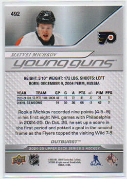 2024-25 Upper Deck YOUNG GUNS RC OUTBURST SILVER Matvei Michkov Flyers #492