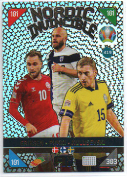 2020-21 Panini Kick Off Uefa EURO NORDIC INVINCIBLE #419 Teemu Pukki-Eriksen-Kulusevski (MINT)